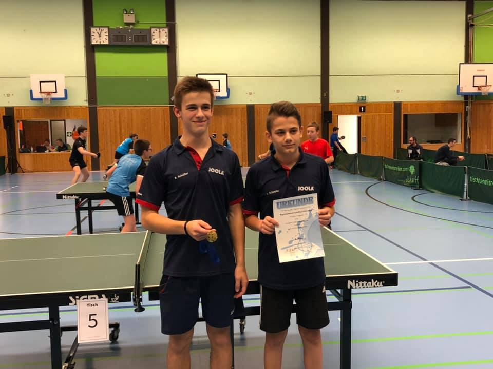 Ben Schüller war an diesem Wochenende der erfolgreichste Spieler der TTG. Mit einer unglaublichen 14:0 Bilanz dominierte er die Konkurrenz. Nur einen Satz musste er im gesamten Turnierverlauf abgeben und das im Finale. Im Schüler A Finale gewann er mit 3:0 gegen Matteo Hubert aus Wolsfeld. Im Jungen Finale gewann er mit 3:1 gegen Leon Kockelmann aus Pronsfeld. Auch Lukas Meyer überzeugte auf ganzer Ebene mit einem 3.Platz in der Schüler-A Konkurrenz. Den Titel der Jungen-Doppel Klasse gewann ebenfalls die TTG. Ben Schüller und Luca Schmitz setzten sich in einem spannenden und engen Finale gegen das Woslfelder Duo durch. Jannik Vosswinkel durfte sich über einen zweiten Platz freuen. Leider verlor er knapp gegen den Erstplatzierten aus Wolsfeld. Aber alle Jugendlichen zeigten tolle Leistungen und sorgten für die ein oder andere Überraschung.